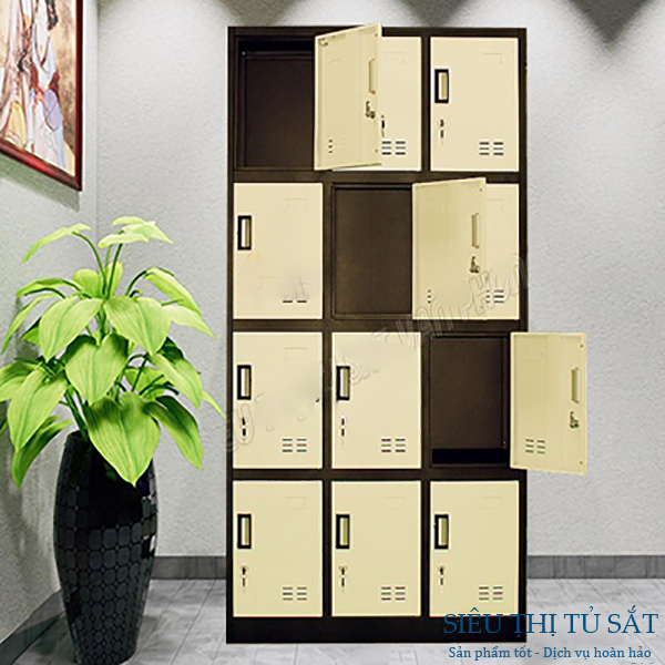 Sử dụng tủ sắt 12 ngăn màu trắng đen tại văn phòng, các khu vui chơi là cách tốt nhất để bảo vệ tài sản cá nhân. Bên cạnh việc được thiết kế bền đẹp thì loại tủ sắt nhiều ngăn này còn hỗ trợ chìa khóa riêng cho mỗi khoang để đồ vì thế bất kỳ cá nhân khi cất giữ đồ sẽ an tâm hơn khi bản thân được giữ một chìa khóa riêng. Thiết kế chắc chắn màu sắc nổi bật, hiện đại đây là loại tủ sắt được rất nhiều văn phòng lựa chọn và sử dụng vừa làm thiết bị trang trí nội thất, vừa làm thiết bị lưu trữ tài liệu rất hiệu quả.