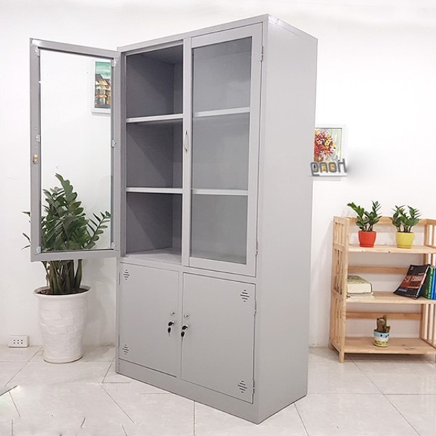 – Hình dáng tủ theo khung hình chữ nhật với các cánh kính và cánh sắt mở